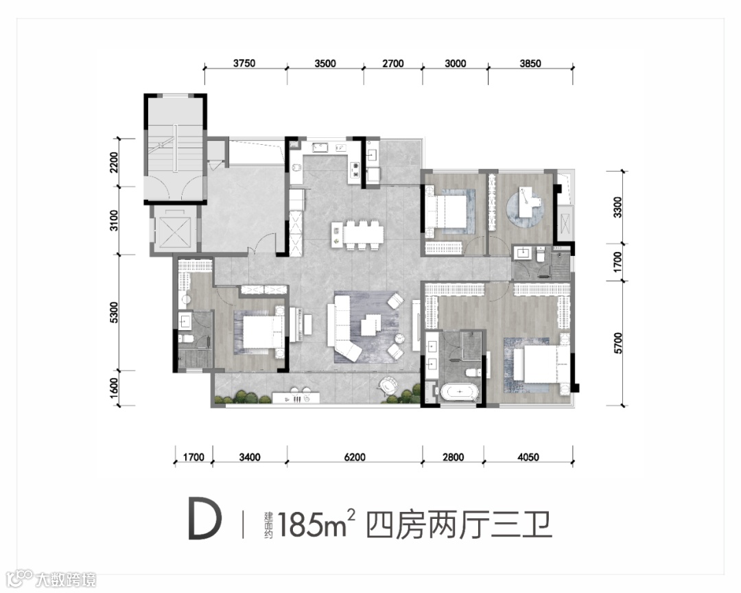 高层类独梯入户,户内LDKB一体化设计,南北通透,极致观景,家庭公共生活空间最大化。