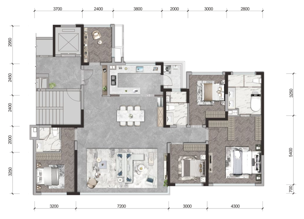 整层卧室起居舒适空间,遵循高阶叠墅布局,一层一代人空间享受,奢加冕峯层生活仪式;
