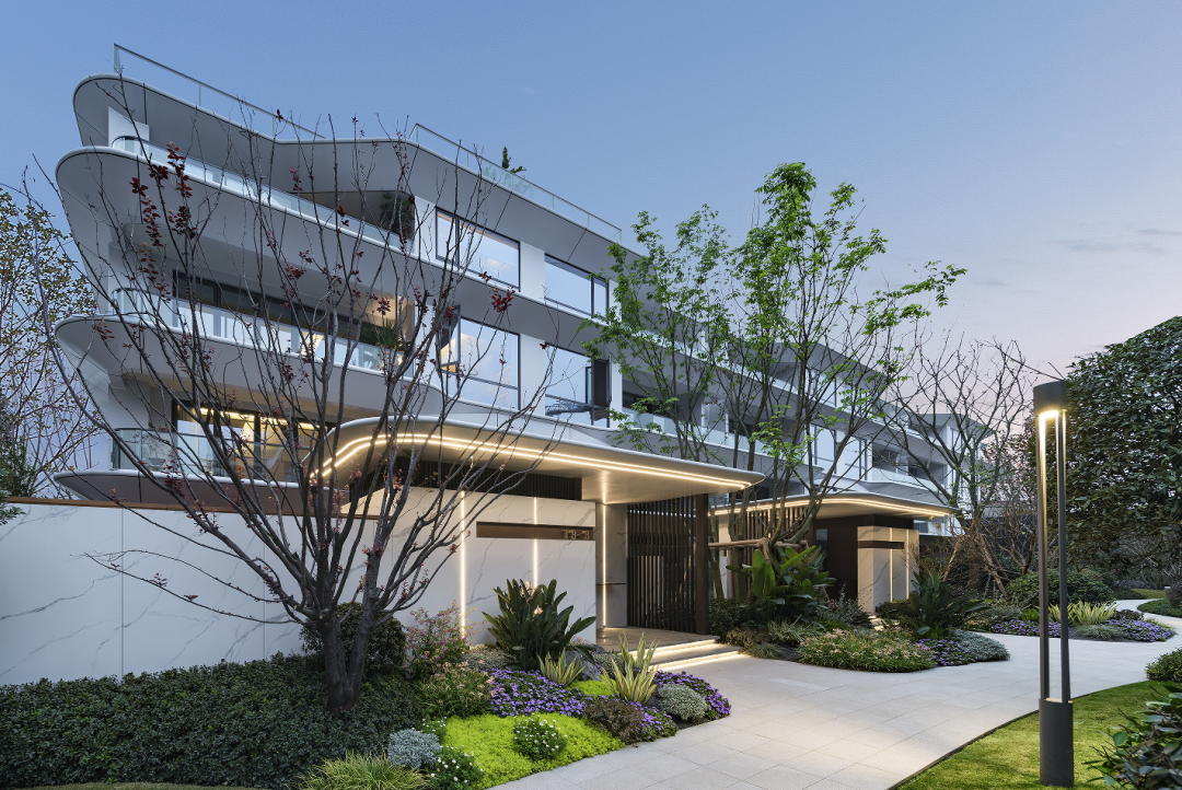 在建筑设计上沿袭府系品质,打造现代东方的建筑肌理与简约立面,焕新城市颜值。