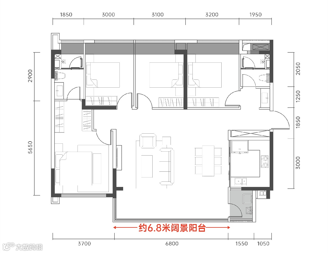 建筑面积约173㎡/204㎡环幕官邸,全端户设计四房起步标注峯层纯度。约270°环幕视野,阚见更广度城市风景,确保每一眼都是值得收藏的盛景,更采用透光性更好的中空LOW-E玻璃,打造出栖光者的天堂。