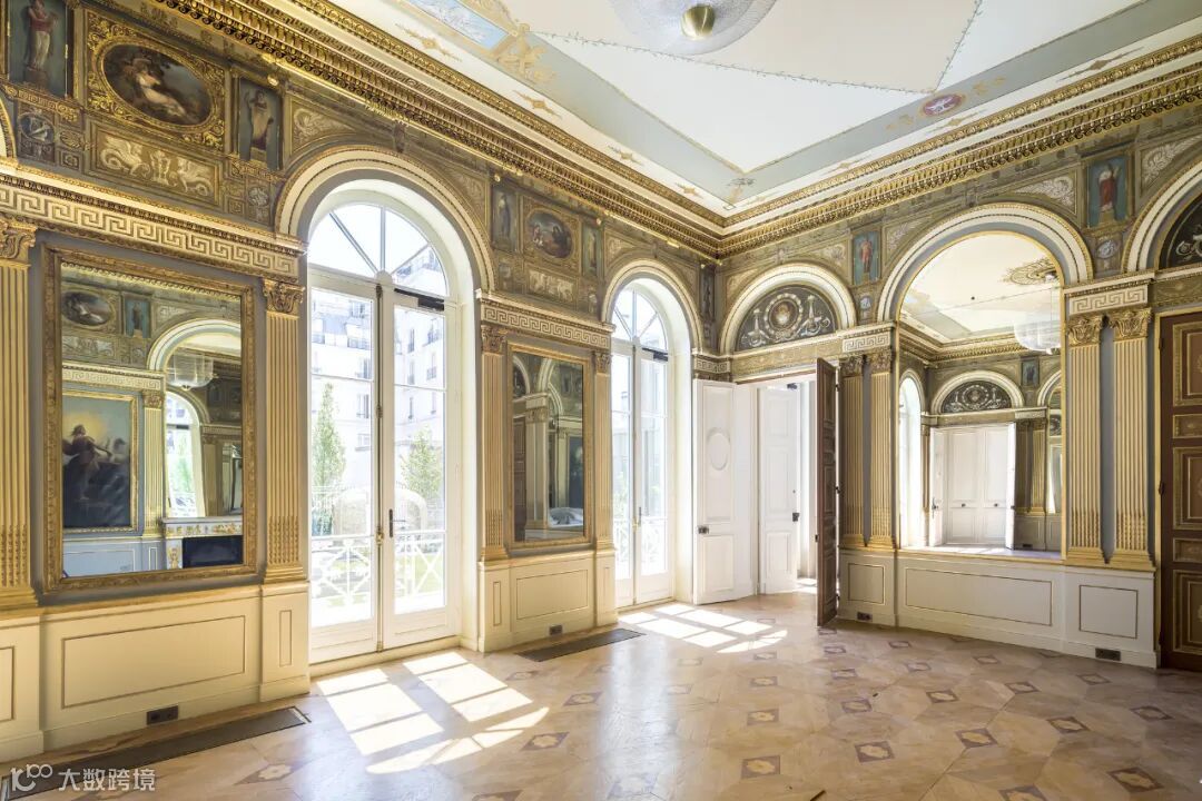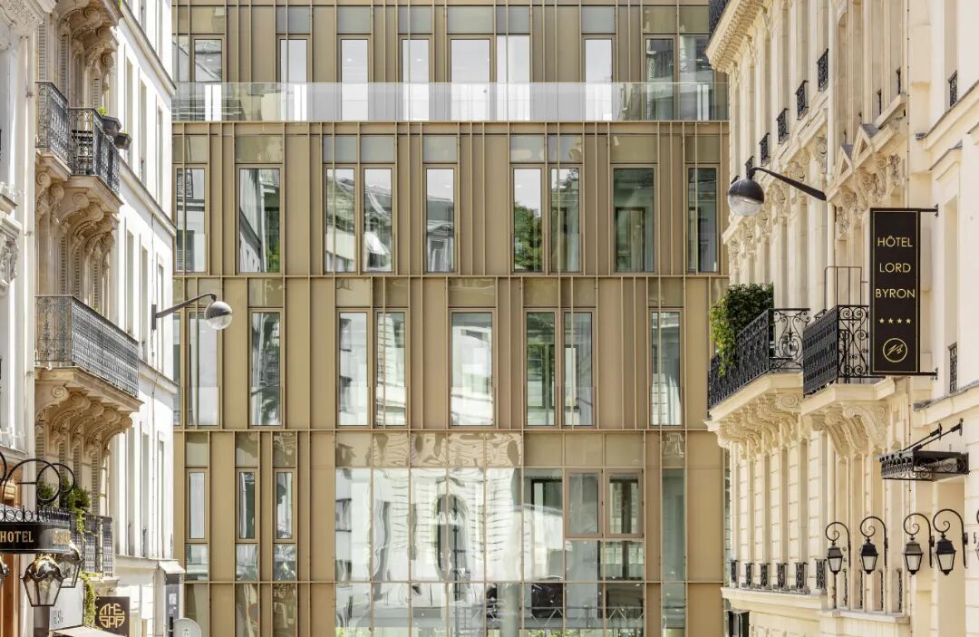The work on the interior spaces combines a careful restoration of the historic parts, such as the splendid living rooms of the Hotel Particulier with very contemporary spaces. The lobby is an example of this approach, combining elements of history and the clean implementation of noble materials such as marble and brass.