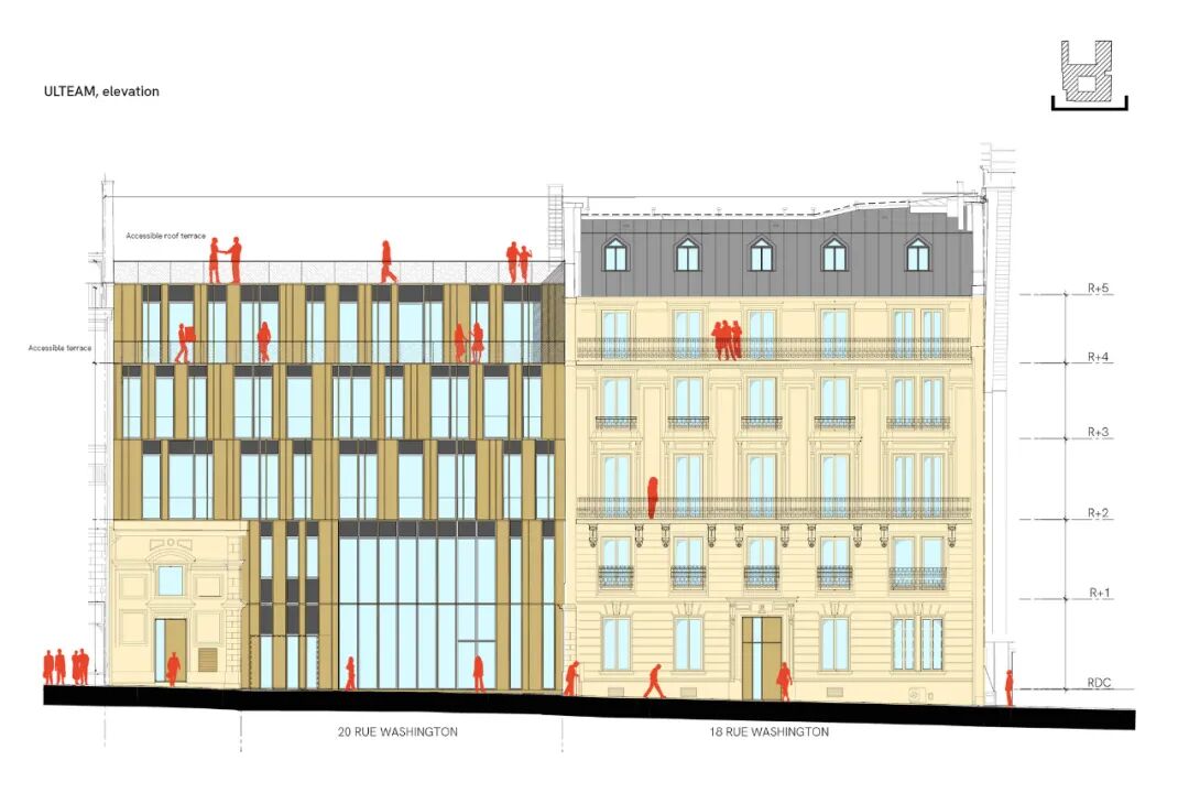 ULTEAM is a rehabilitation project for a group of offices, that includes a Haussmannian building and a structure from the 1950s. The Hotel Particulier (Private mansion) with its main courtyard and traditional French garden, dating from 1820, is at the heart of the project. Close to the Champs-Elysees, the rehabilitation brings history and contemporary architecture together.