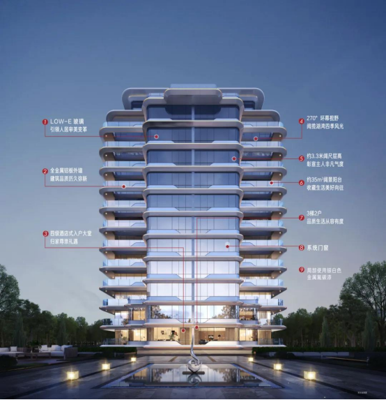 而公建化住宅立面使用时尚简洁的材质,进行统一化设计建造,外立面更具整体性和时代感的同时,对细节的处理更佳精致大气,线条清晰利落。从根本上避免了传统外立面排水立管、燃气管线、空调室外机外露、义务晾晒随意性等造成的建筑外立面掉价。本项目使用公建化现代简约外立面艺术设计,将会成为绿鹿溪湖畔亮丽风景线,革新城市封面想象。
