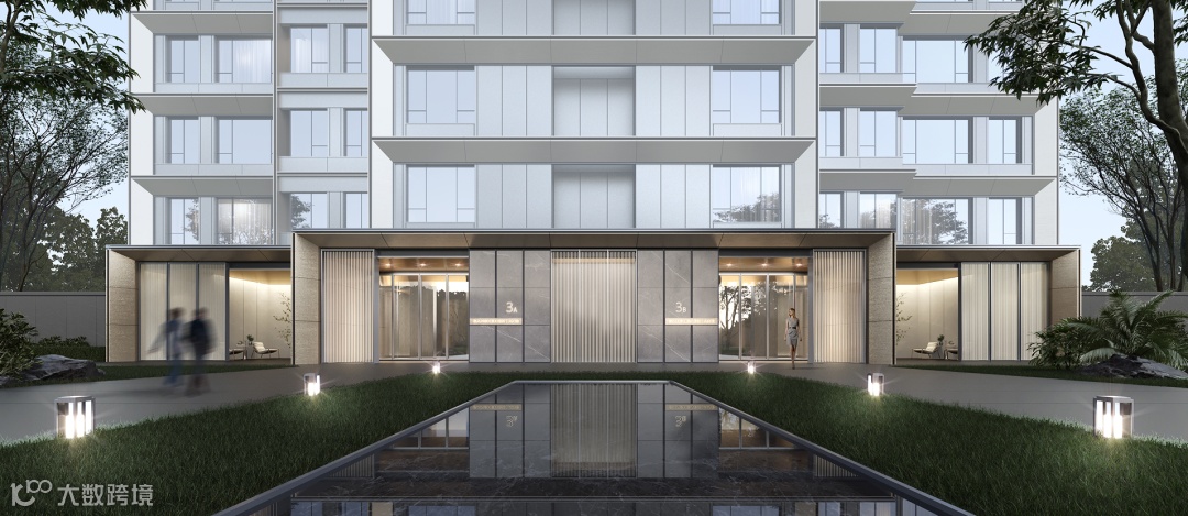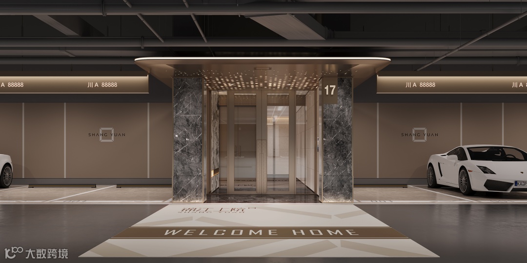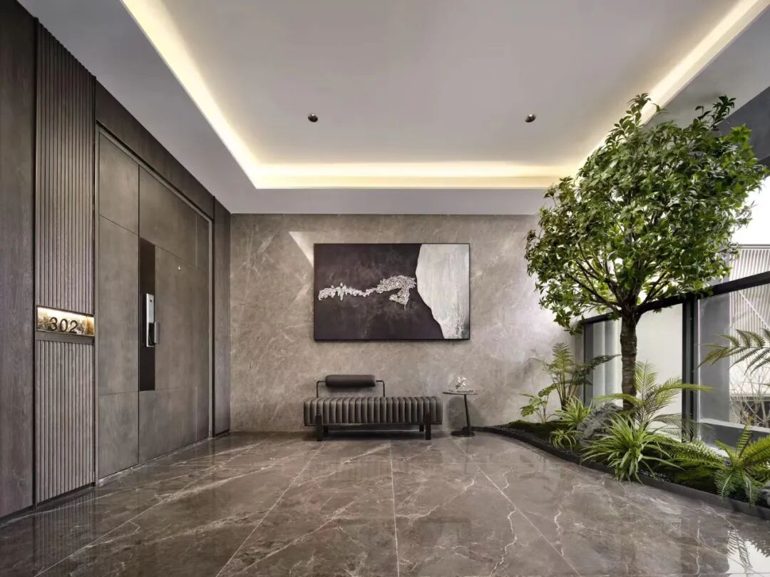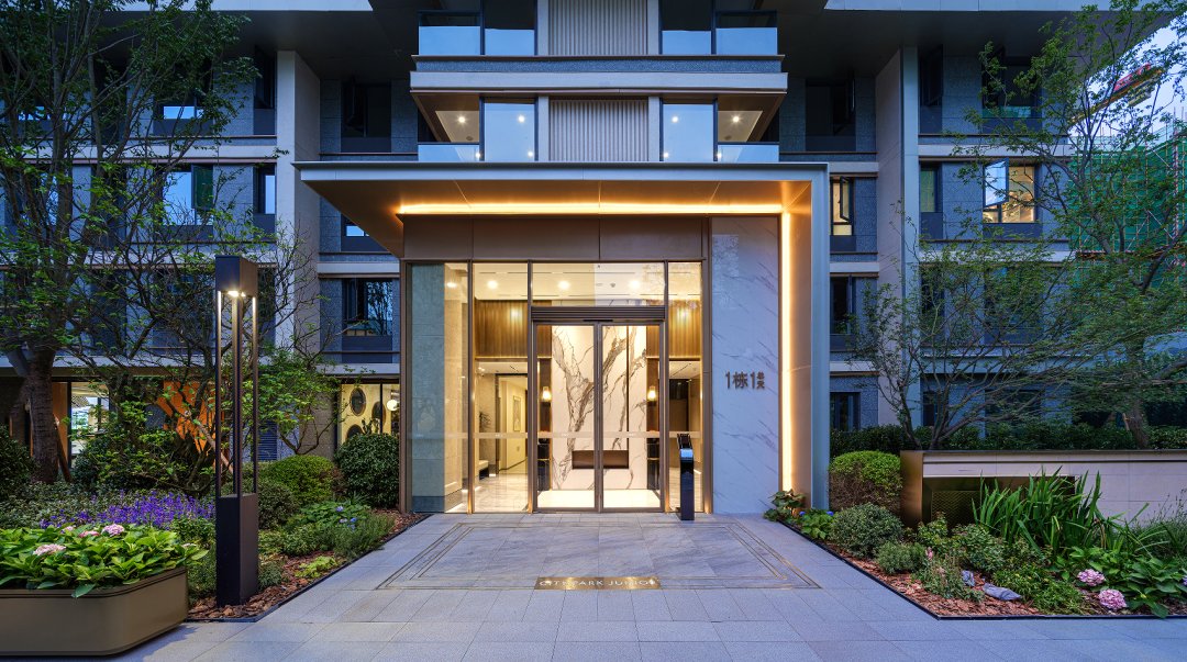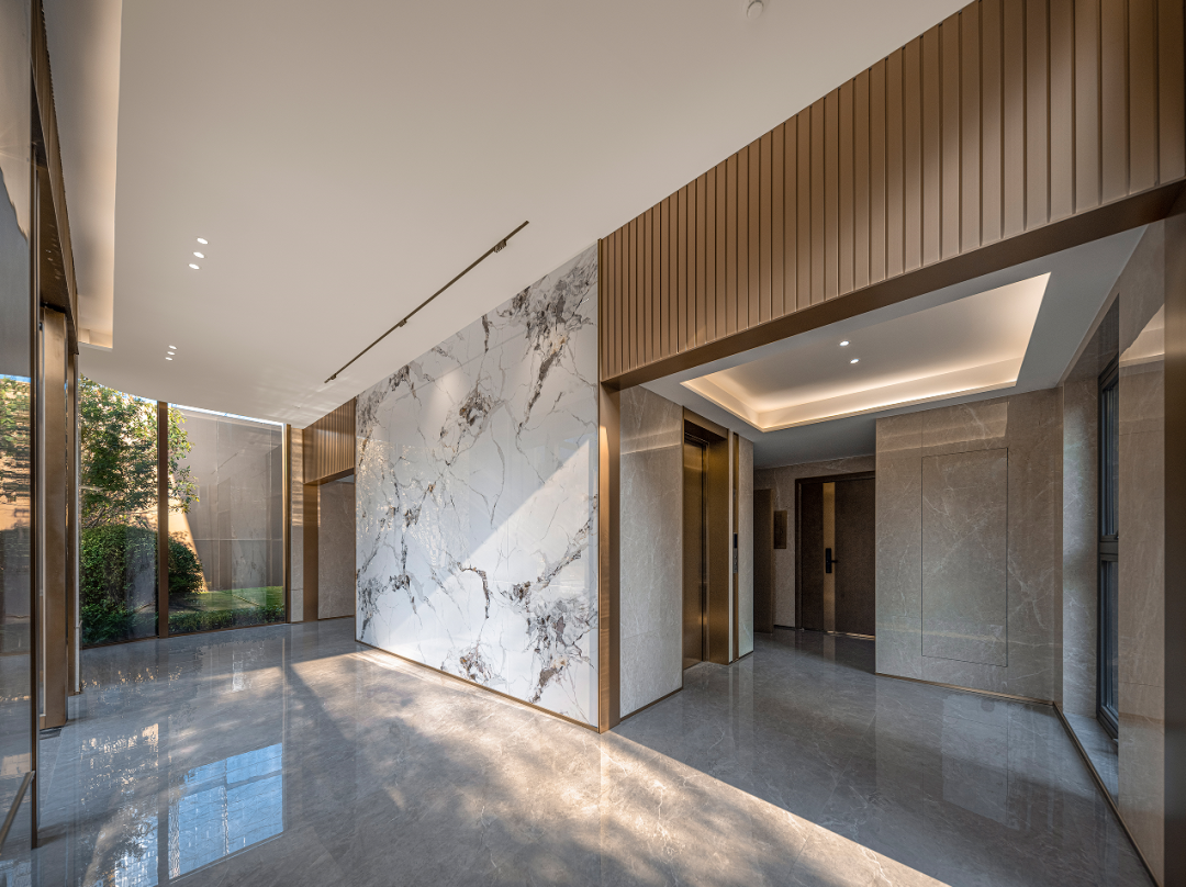 叠拼花园入户,大堂、车库、电梯等归家礼序中途经的公共区域全精装设计。
