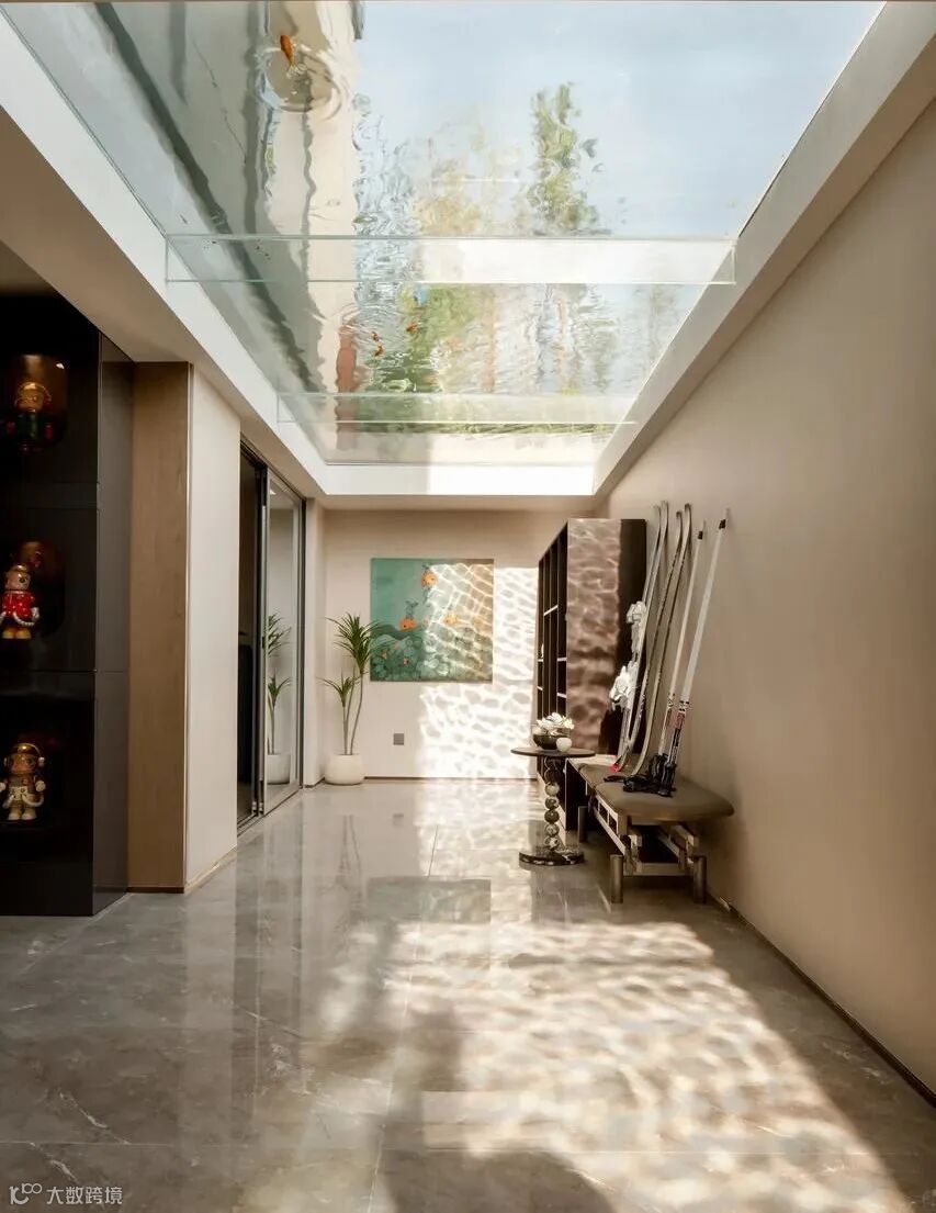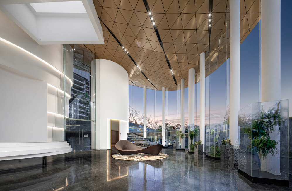 纯净的玻璃幕墙实现室内外空间的无界交流,构筑起展厅内游人的的思考、冥想、动静与平衡,予人清新舒适的视觉观感与心境体验。