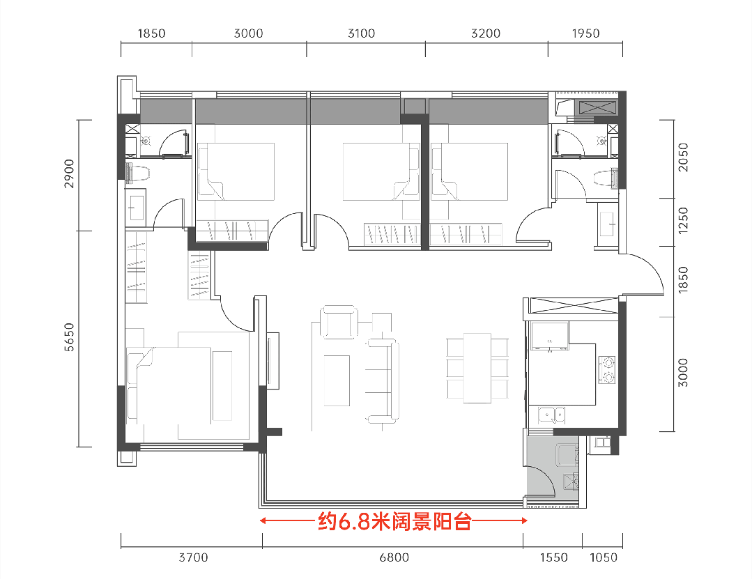 招商·新川臻境在户型设计上,选择了纯四房社区的纯粹路线,131-168㎡的面积区间内,几乎每款产品都能实现越级享受。