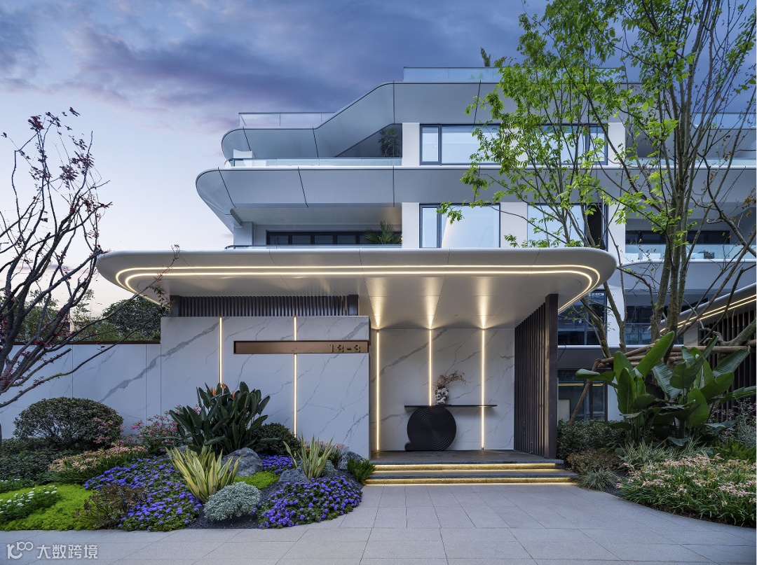 主入口区域作为项目的第一眼印象,也是城市街区的第一展示面,招商·新川臻境打造了约40m奢尺大门,质感材料和对称结构所产生的尊贵感。