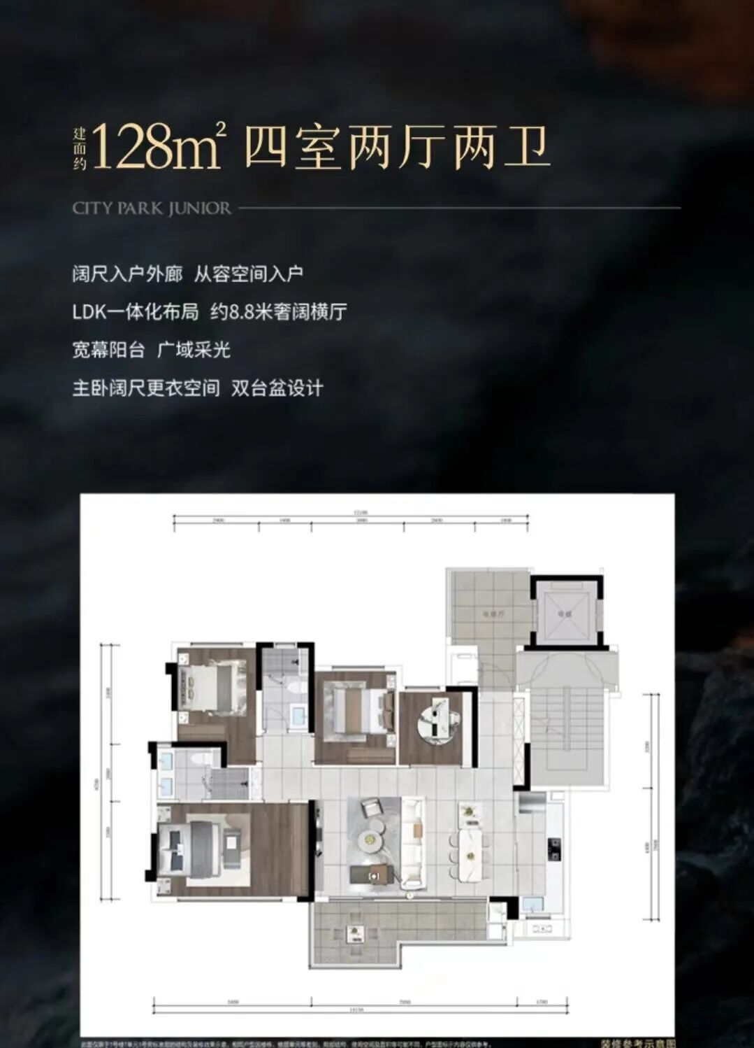 LDK一体化设计,奢阔可变空间,满足多龄段居住需求;近270°转角阳台、独立电梯入户前厅、阔尺衣帽空间、轻奢臻装风格,从多个维度对居家生活进行迭代升级。