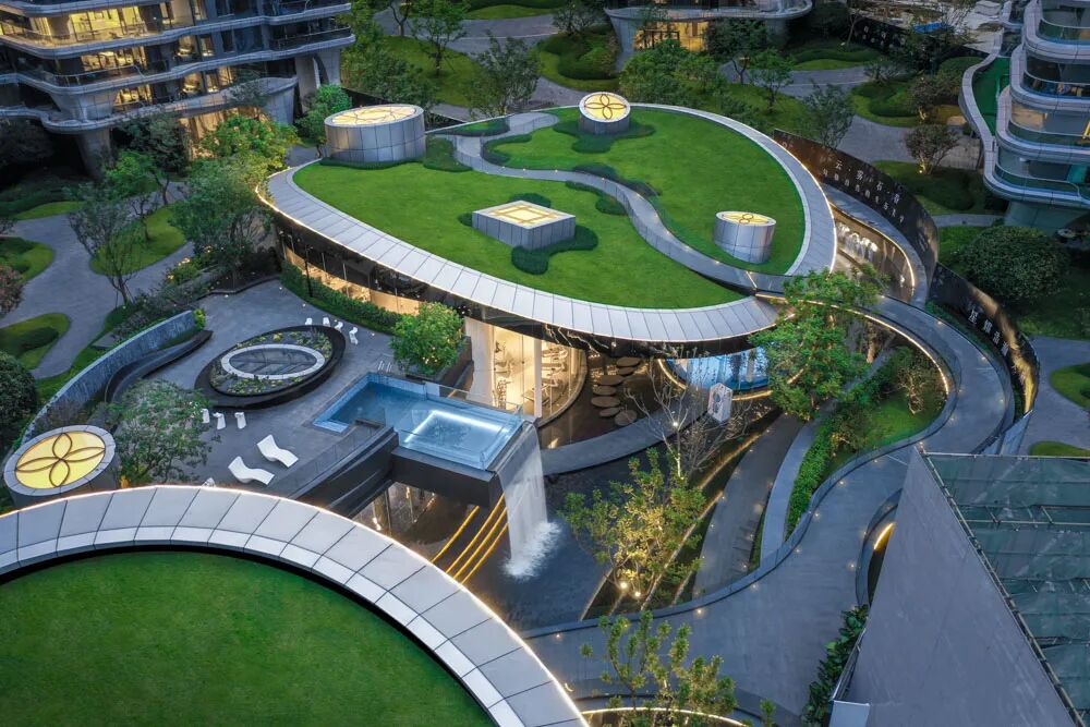 以“编织蜀光交叠森语”为设计灵感,布局“一轴两苑十六园”景观园林,将蜀绣编织技艺融入景观造诣,织造当代都市度假生活蓝图。沿约200米花园中轴,将整个园林分为南北两苑,16个主题空间点缀其间,遵循动静结合、承上启下的空间手法,将五种功能空间交错布局,形成引人入胜、渐入佳境的五进归家动线。