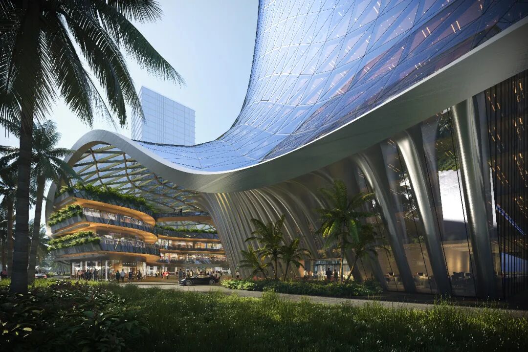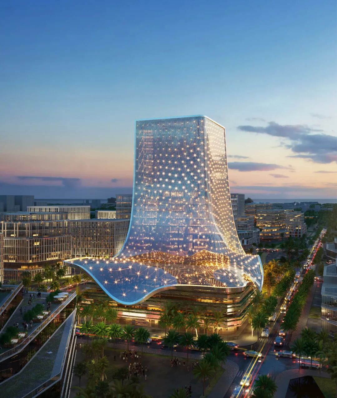起伏的“海浪”造型,不仅创造了独特的建筑空间,同时也呼应了城市的海洋特色,创造出动感浪漫的城市天际线。