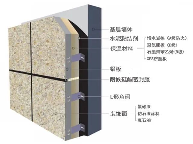 具有保温和装饰两大功能,是一种新型节能建材产品,与防火型保温材料在工厂进行复合,如聚苯保温板、岩棉保温板等,实现产品预制化、标准化、多样化。