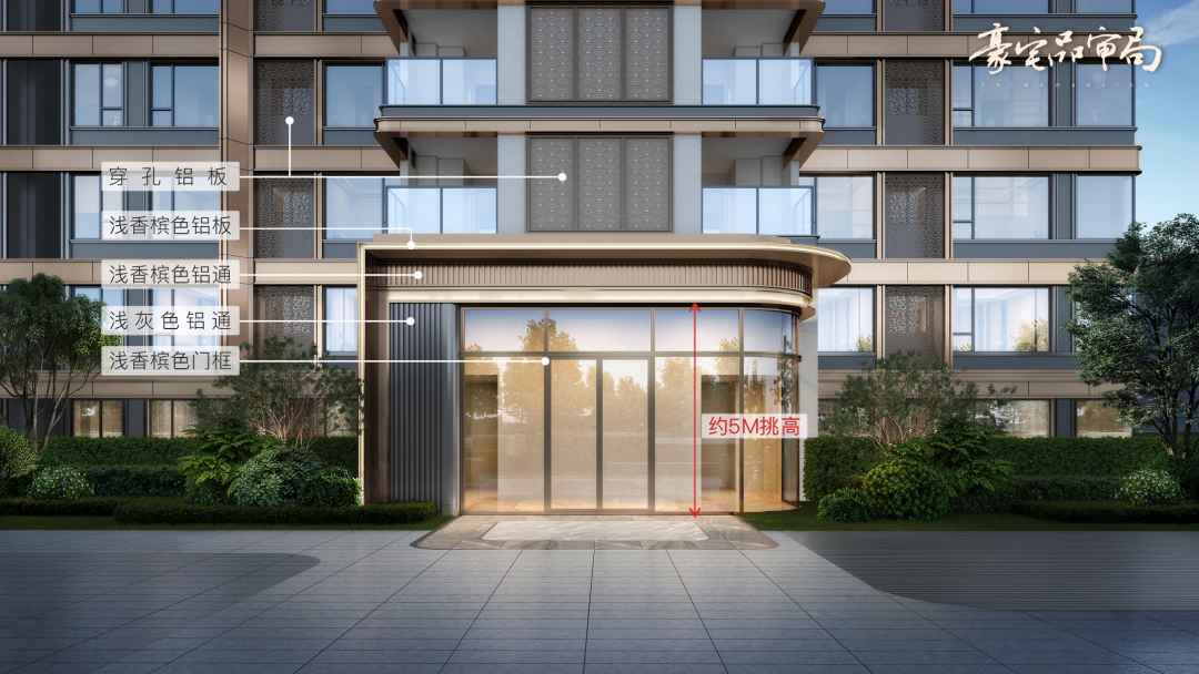 香港置地·西元项目出现在主立面的铝单板和铝制线条在背立面同样存在,单元门头由全铝板包裹。