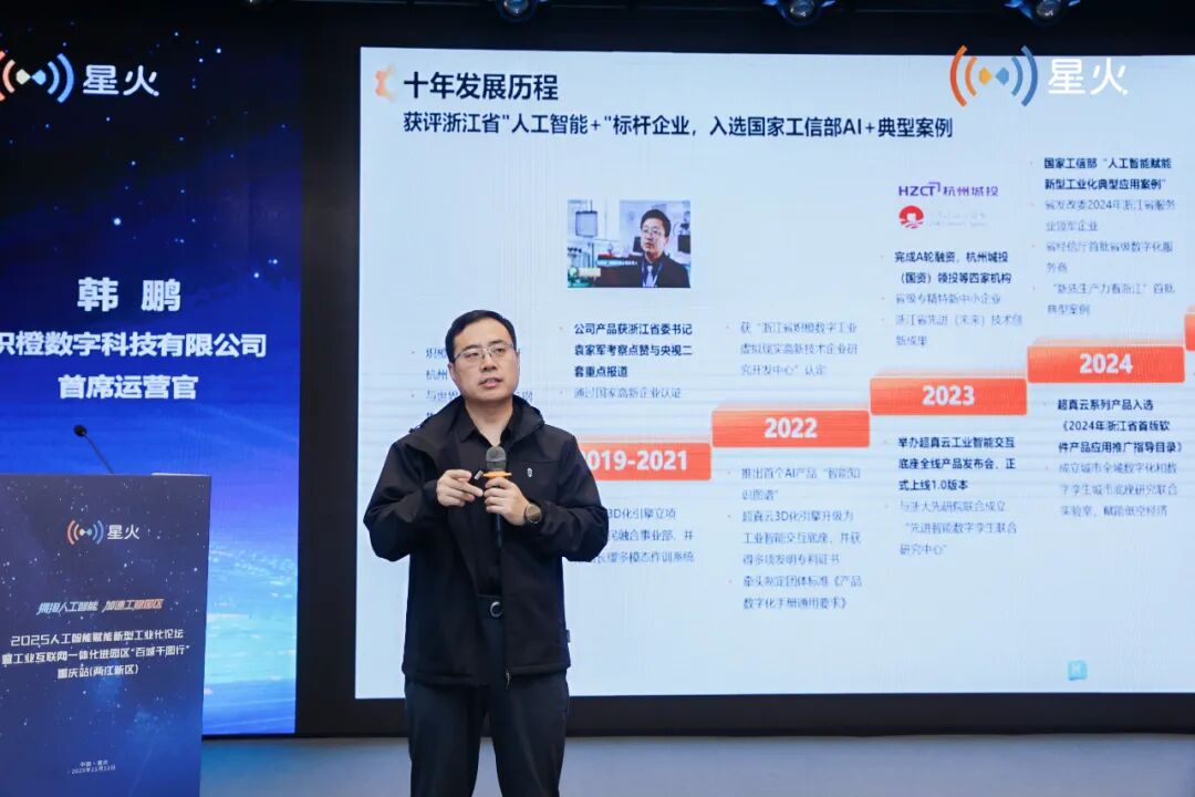 会上,来自不同行业的专家发表了系列主旨演讲,共同探讨人工智能与制造业融合发展新趋势。礼嘉链网智汇数字科技(重庆)有限公司总经理张吕川发表了题为《从场景数据集到智能体:工业智能体的创新赋能之路》的主旨演讲,他指出,“人工智能+制造”应用趋势驱动从“数据洞察”的浅层次专用智能迈向“自主智能”的深层次智能。未来,“链网智汇”工业智能一体化服务平台,将以工业场景为牵引,打造“数据集-模型-智能体”一体化服务;炽橙数字科技有限公司首席运营官韩鹏发表题为《构建工业智能底座,赋能制造业高质量发展》的演讲,指出炽橙科技正专注于打造国产新型工业底座软件和智能体开发平台。他介绍了公司已构建起集“多源异构数据分析”、“工业高质量数据集”和“垂域大模型”于一体的自主可控工业智能交互底座;重庆邮电大学工业互联网学院副院长王浩围绕工业互联网与工业智能关键技术方向阐释了工业互联网在网络、数据、智能三个层面的关键技术进展。他指出,从工业5G、TSN到工业数据空间(IDS)和数字产品护照(DPP)的应用,正推动IT与OT的深度融合,而工业智能的最终落地需要一个IT与OT融合的新型基础设施作为关键支撑。