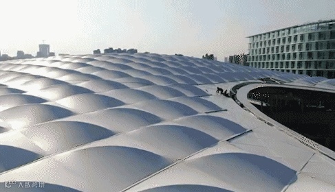 膜结构又叫张拉膜结构,是21世纪最具代表性的建筑形式。打破了纯直线建筑风格的模式,以其独有的优美曲面造型,简洁、明快、刚与柔、力与美的组合,同时给建筑设计师提供了更大的想象和创造空间。