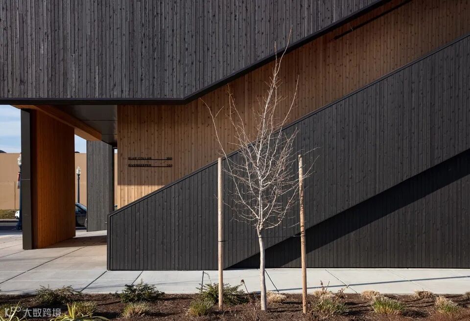 美国Outpost商业综合体建筑外部采用了天然雪松与烧杉板。