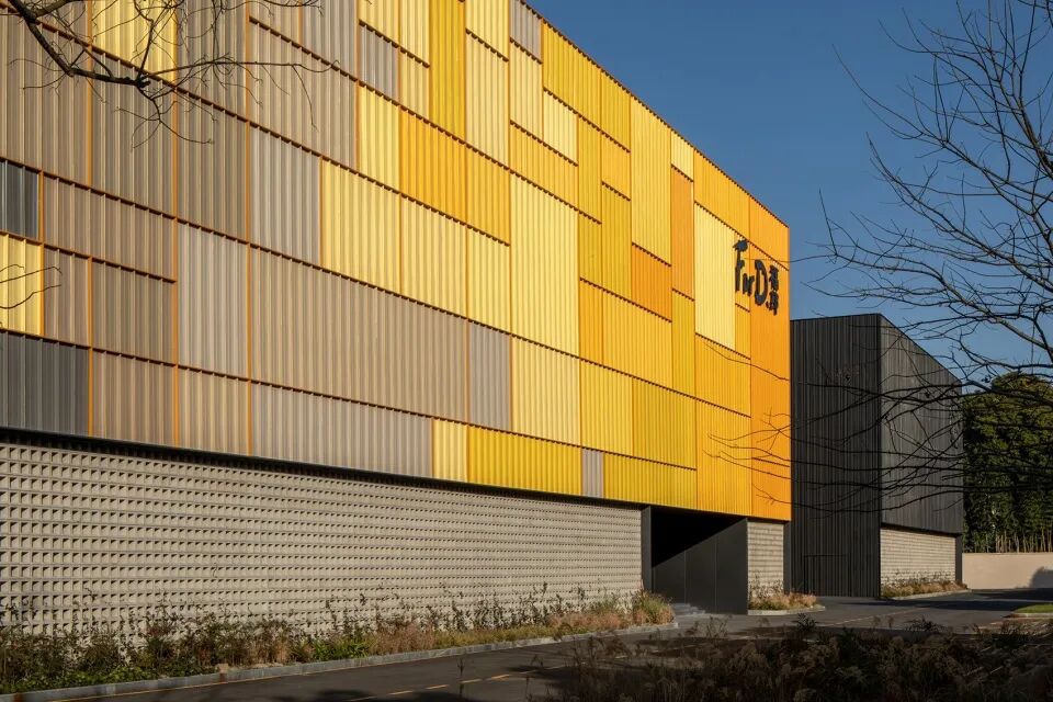 杭州Flop艺术空间建筑外立面材料采用了耐久性更好的铝镁锰板作为墙面及屋顶的主要材料。