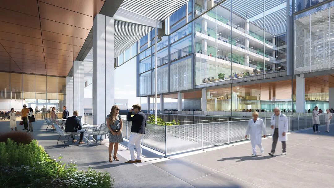 三栋实验综合体地面首两层及“复合交流层”之上的第四层为8米层高的灵活实验室,五、六层则是创新型实验室,层高5.5米,布局与办公紧密相连。