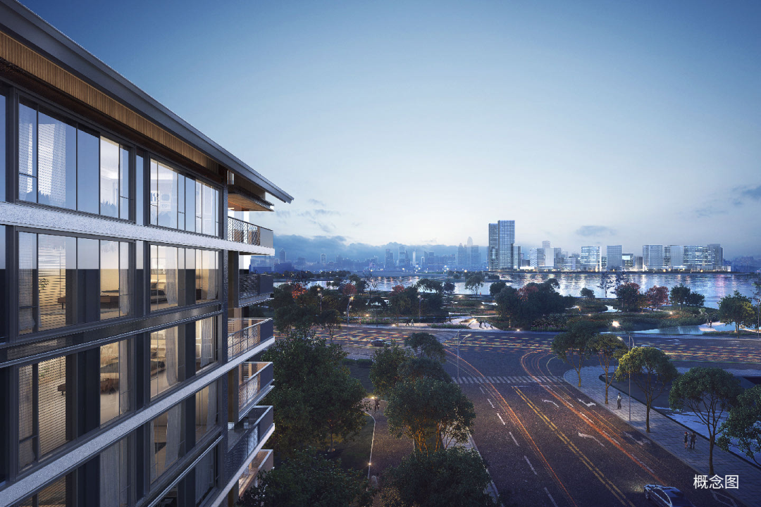 永威上和琚汲取国际一线豪宅的建筑理念,从整体规划、建筑设计、室内营造等多维度考量,抛弃更为节省成本的实体墙面,采用大范围的玻璃幕窗。超大窗墙比,使建筑兼具无边视界与充沛阳光的双重品质。