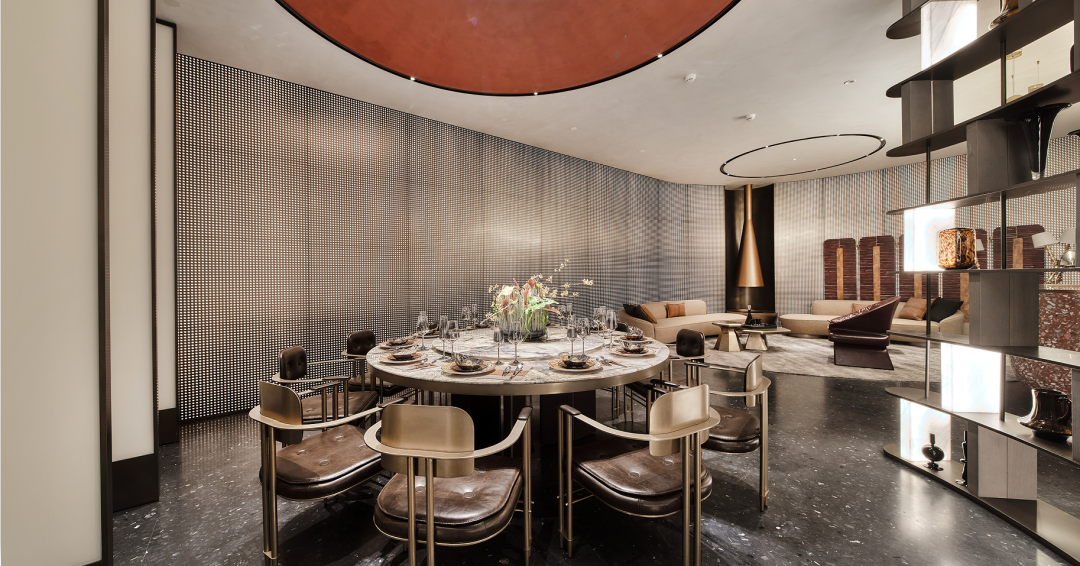 归家大堂首层到三层全架空设计,以挑高9米的尺度,李玮珉执笔的美学思考,打造中原挑高最高、空间最大的豪装酒店式入户大堂。