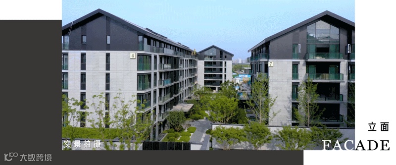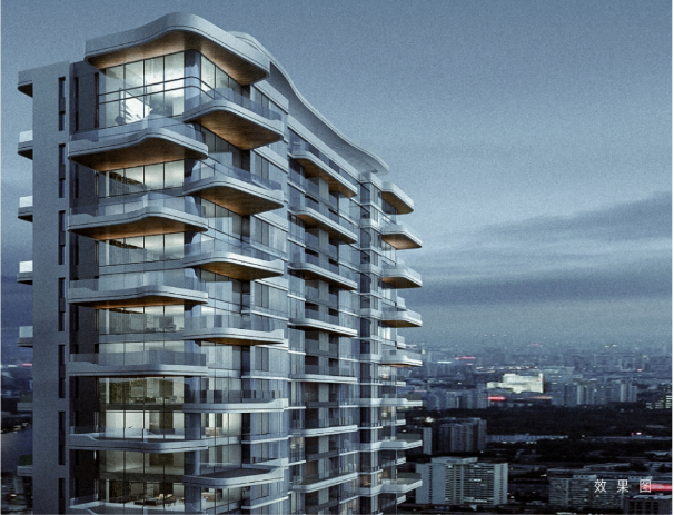 项目规划11栋7+1层的洋房设计,整体外立面是玻璃幕墙+铝板+石材的组合,打造出以极简主义风格为本,坡屋顶玻璃外幕设计的理念风格。