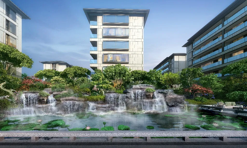 云著湖居致力于打造全龄化、情景化、交互化的现代功能社区,以水为主要元素打造约200米南北归家双轴,赋予归家尊崇仪式感;结合百亩公园生态资源,通过东南西三侧景观打造约800米U型景观带,移步异景邂逅雅境。
