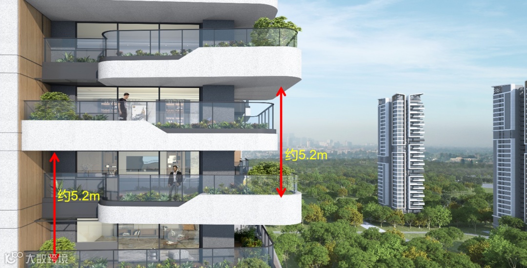 万科翠湾中城的创新错层阳台设计,部分挑高达到了约5米。通过巧妙的阳台错层设计,使得住户能拥有一个部分挑高约5米的空中私家花园。