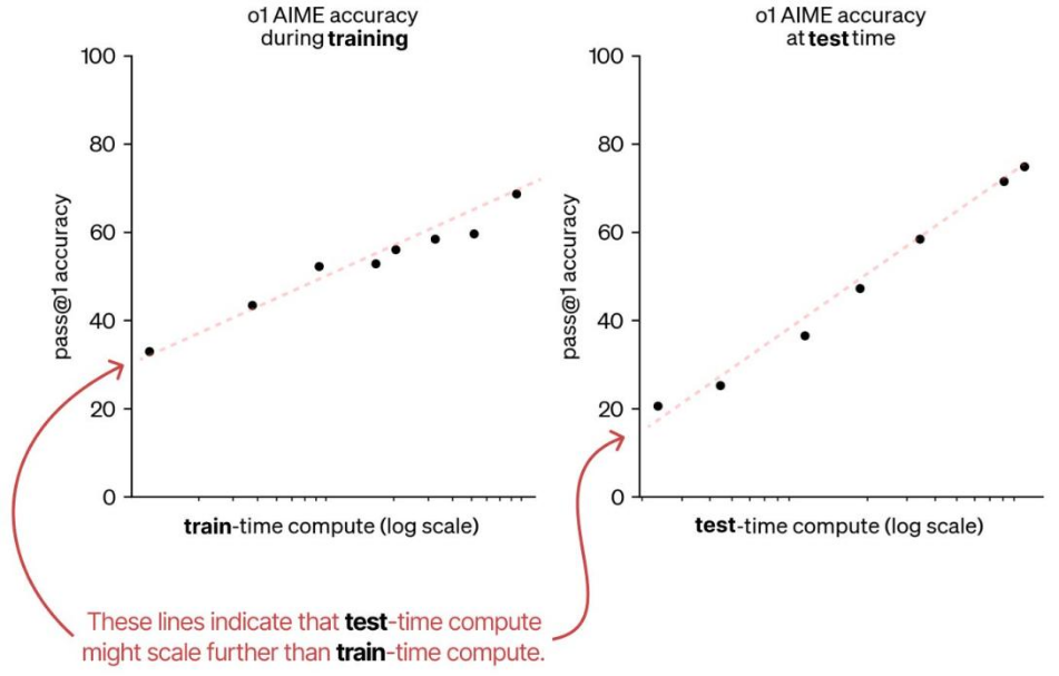 图4 OpenAI o1性能随训练时计算和测试时计算平稳提高