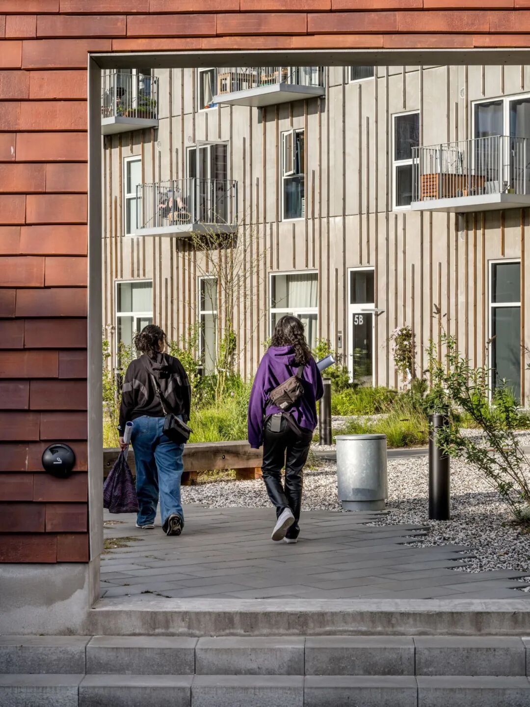 The gables of the complex continue as a low wall encircling the courtyard. Dept. 76 is a good example of how community creation, and a sense of belonging, can go hand in hand by optimizing square meters and materials. Quite simply, the architecture embraces the social element by prioritizing areas for communities to form and unfold. At the same time, a quite narrow material palette and carefully chosen solutions contribute to strengthening the complex’s identity.