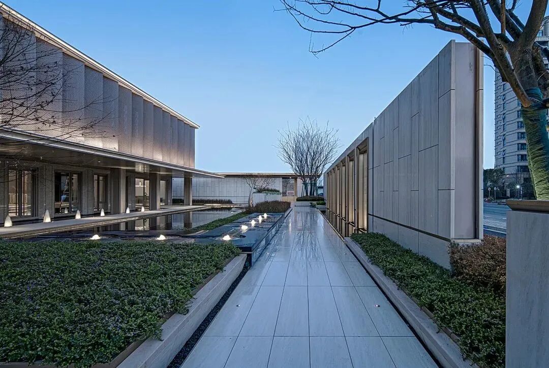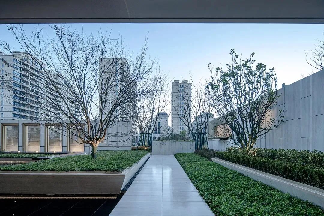 米白石材的纯粹体块与玻璃幕墙的通透视野,塑造出建筑、景观、室内的一体化观感。以藏在细节中的优雅秩序,展现由浅入深的层次,引发由近及远的遐想。