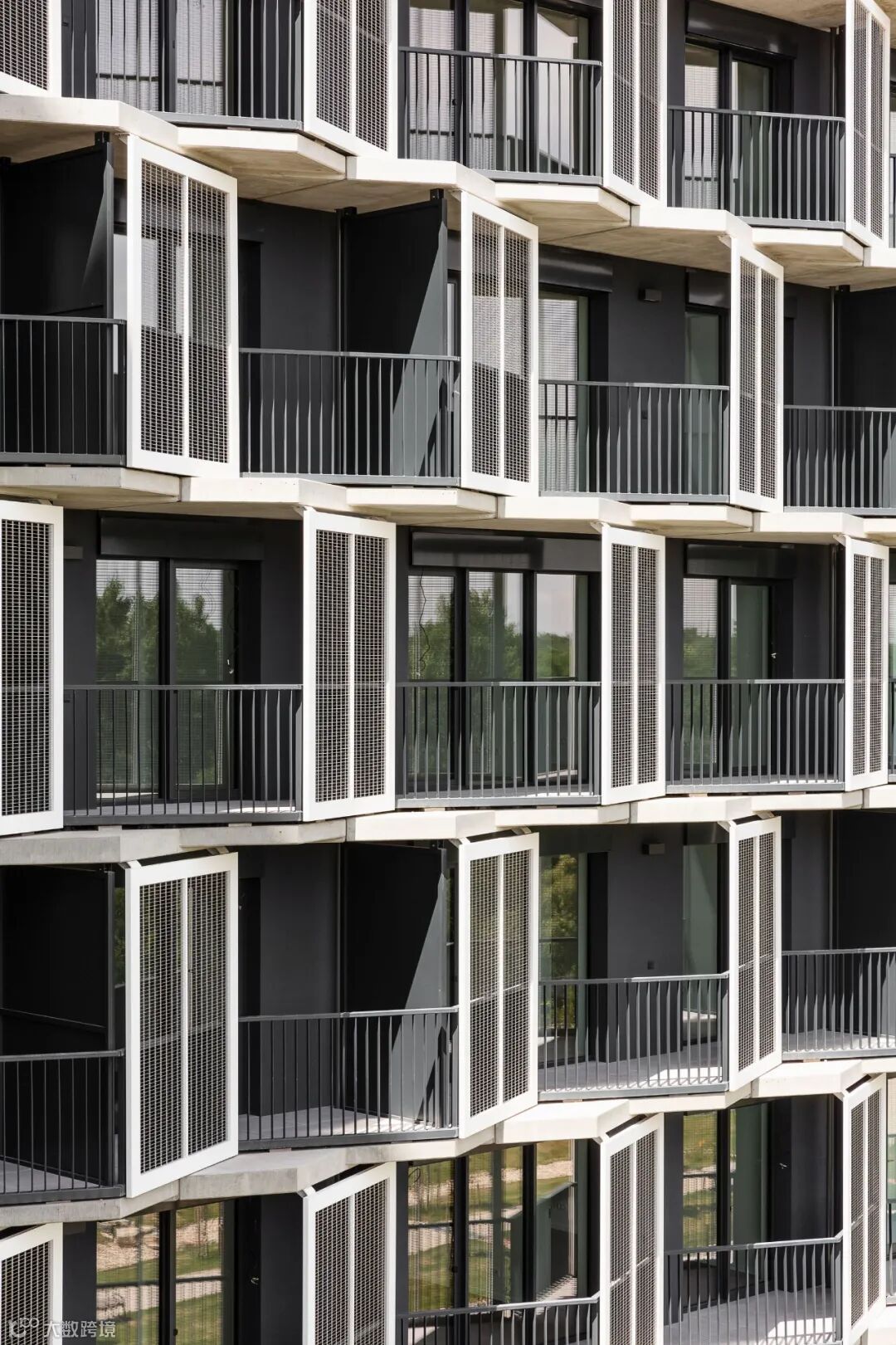 Widely visible, the project is comprised of a 20-floor north tower and a 17-floor south tower with an eight-story high connecting building in between. Acting as design lead architects, AllesWirdGut focused their attention, aside from the planning of the apartments—from smaller units to family apartments, and to penthouses with terraces—on the façade design with its distinctive cubiform loggias. The three-dimensional space-creating building skin layer provides generous additional outdoor floor space and offers protection against sun, wind, and rain.
