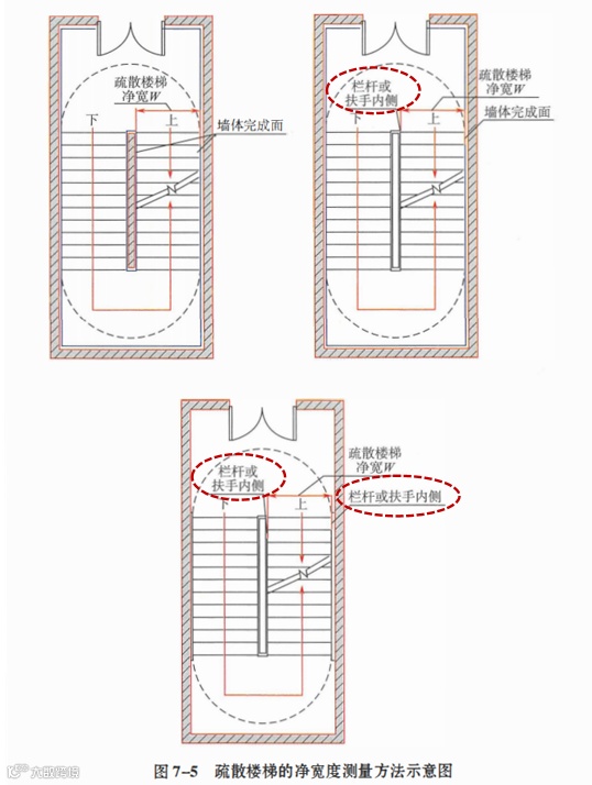 关于梯段净宽计算目前有两个标准,图图规范之前也解读过,点击查看: