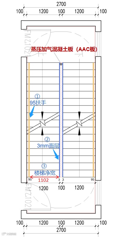 将中间隔墙材料换为蒸压加气混凝土板(AAC板),2700mm开间楼梯,刚好能满足。