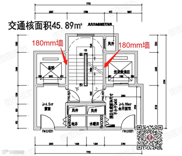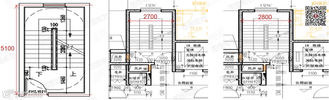很多设计院没有深入研究,认为2700mm开间楼梯间已不能满足要求,简单粗暴地将楼梯间开间扩大到了2800mm。