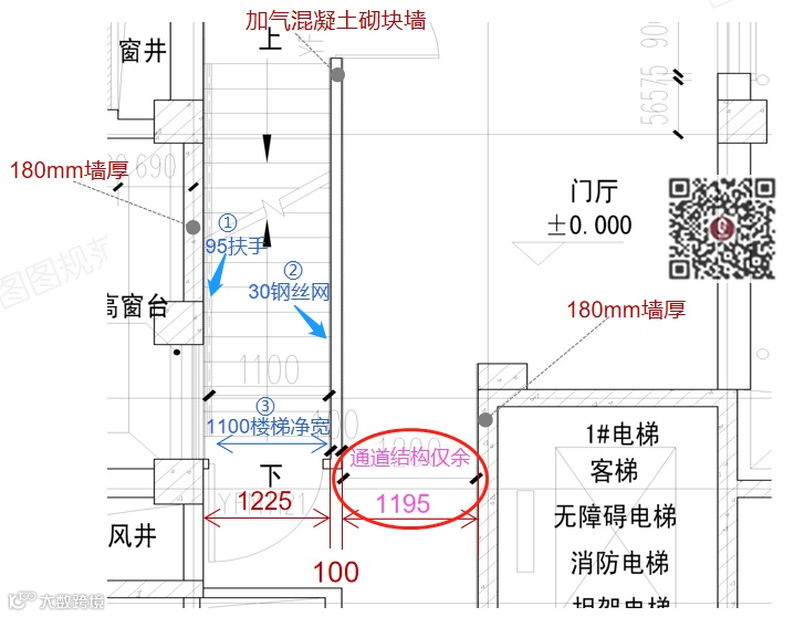 其中“靠墙扶手边缘距墙面完成面净距不应小于40mm”,对11~18层的楼梯间影响巨大。(点击我了解)