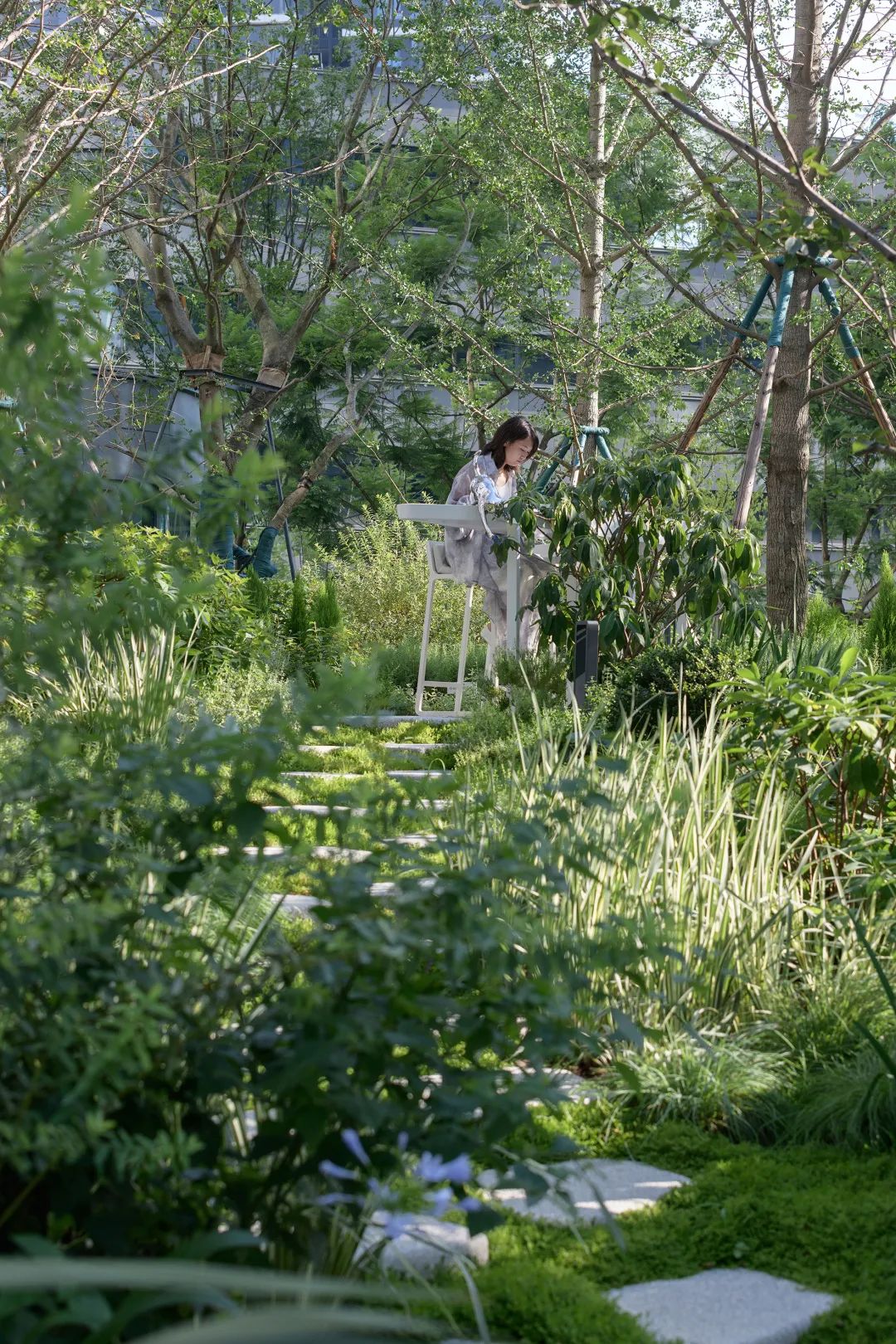 将微型 “城市谷”的概念植入下沉庭院, 为景观赋予了更多的空间维度。