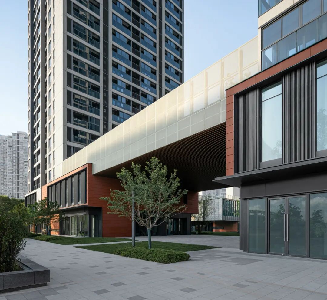 在公共空间的营造中,我们一直思考如何将商业与配套公建进行合理化布局。通过不同楼层连接的公共空间,住户在有限的居住空间之外也可享受大空间带来的活动互动体验感。我们希望人们在风雨连廊、景观和建筑打造的社区空间里,可以悠闲散步、也可以眺望远处享受难得的宁静、在烟火气中感受生机与活力。