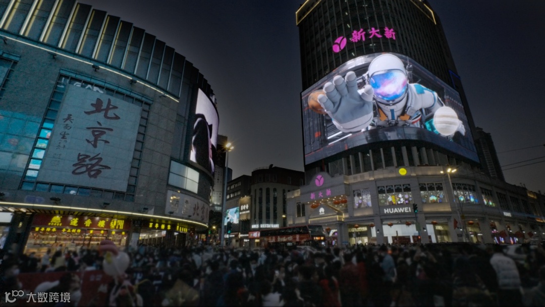 空间站中一艘高科技太空船停留在屏幕前,宇航员将一只巨大的手冲出屏幕和观众互动……广州北京路新大新大厦巨幕中震撼的视觉效果引来路人拍照打卡,驻足观看。日前,这块由4K花园独家运营的国内首块1200㎡8K裸眼3D户外大屏——“8K春天”正式启动,投入商用,这支由4K花园出品、向中国航天精神致敬的最新裸眼3D创意视频,燃爆整个北京路商圈,让更多民众对户外创意充满关注与期待。