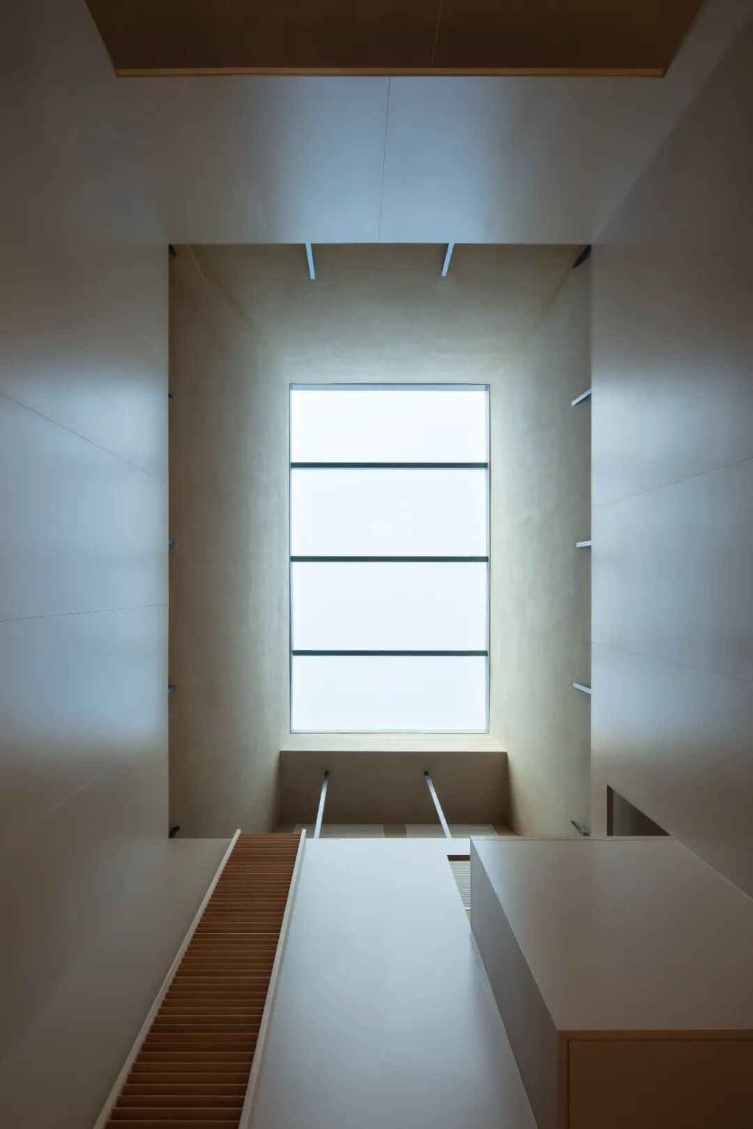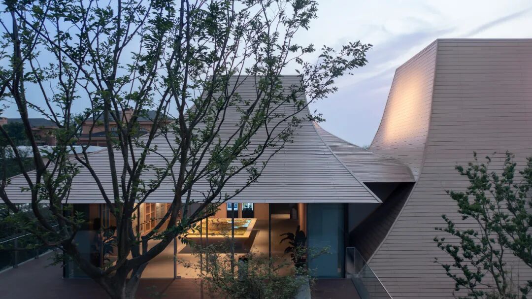 大坡屋顶的建筑意象首先源于对荆楚文化的回溯。设计从黄鹤楼和当地传统建筑的檐口形式、色彩色调等关键要素进行类型提炼和抽象演化,生成以飘檐与观景挑台相嵌的屋面形式,暗含磅礴深远的在地建筑文化。巨构屋面不仅在形式上构成了社区坐标的中心意义,对内部空间而言,屋顶和天光还具备了更深层次的精神性媒介的可塑性。