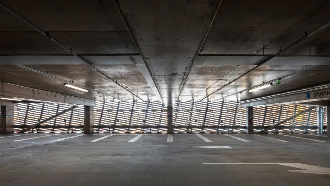The load-bearing structure of the parking facility is cast-in-situ concrete, and the facades are prefabricated elements made of large hollow terracotta profiles in galvanized steel frames. The natural hues of the unglazed terracotta bars blend in softly with the neighboring buildings laid in various types of brick.