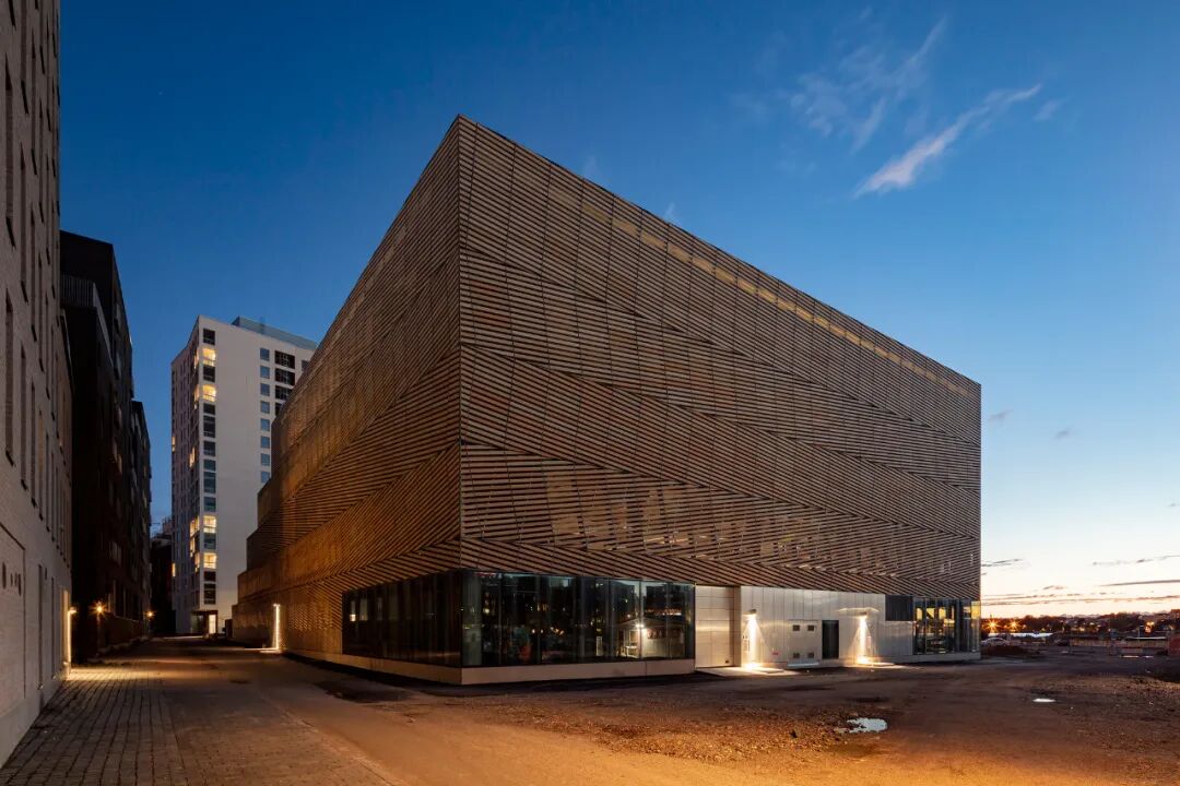 The City of Helsinki is redeveloping its former harbor areas for residential use. One of these areas, the vacated 100-hectare cargo port and dockyard in Jätkäsaari, right next to the city center, will, when completed, contain housing for 21,000 people and workplaces for another 6,000. As building all the required residential parking capacity underground, below sea level would be restrictively expensive, combined with the aim to reduce street-side parking, the city has commissioned a series of architecturally ambitious over-ground parking facilities to cover the residential parking needs in the neighborhood.