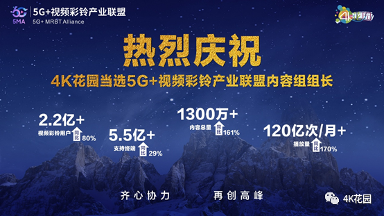 5G时代,伴随彩铃完成从“听”到“看”的视频化跨越,全新的短视频生态扬帆起航。10月21日,在成都举办的5G+视频彩铃产业联盟工作会议上,联盟秘书长、咪咕音乐有限公司副总经理袁敏重磅发布了“视频彩铃内容生态共建计划”,4K花园当选为5G+视频彩铃产业联盟内容组组长,将与各联盟成员围绕公益融媒、原创孵化、平台赋能、政企宣发、终端跨界等方面,全方位构建视频彩铃内容合作新生态。