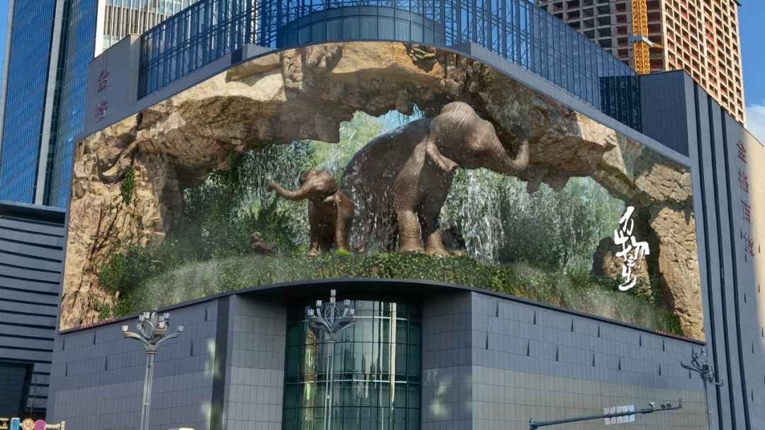 为迎接4.22世界地球日,宣传生物多样性保护,继续讲好云南亚洲象故事,并为COP15第二阶段会议营造良好的氛围,COP15云南省筹备办新闻宣传部与国内领先的5G+超高清应用技术平台4K花园合作,打造的亚洲象裸眼3D创意视频惊艳亮相昆明市北京路与东风路交叉口金格百货中心户外大屏,一经上线受到海内外媒体的纷纷关注。作为目前云南省最大的户外8K屏,成弧形圆角,转角处因采用曲面平滑技术,加之视频融合8K技术、裸眼3D特效等创新技术,观众可以观赏到无缝衔接的逼真裸眼3D出屏效果。视频中,在云南茂密丛林里,瀑布如水帘般落下,水雾光影交错间,绚丽的彩虹光如梦似幻,“火爆网络“的亚洲象妈妈带着小象穿过瀑布,迎面走来,立体的画面带来身临其境的视听体验,震撼视觉感官。