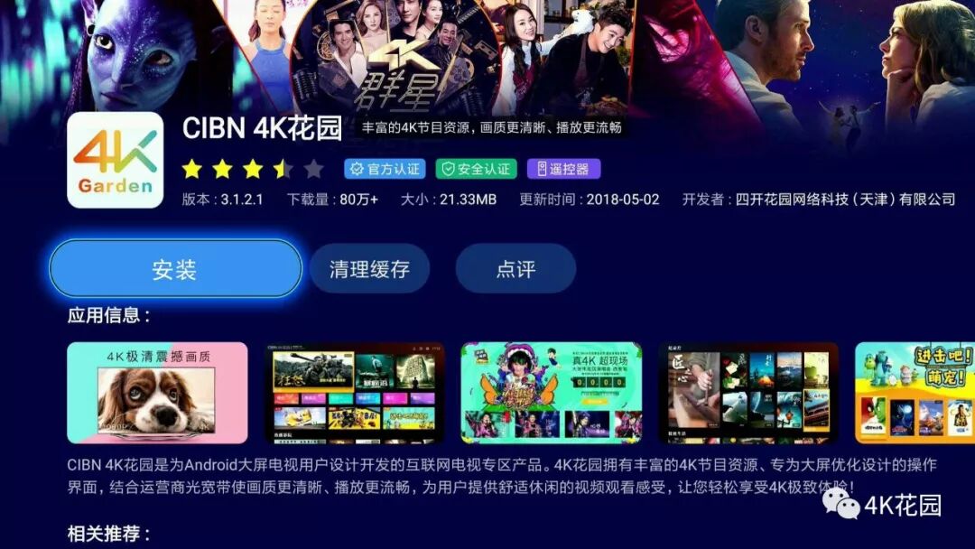 搜索找到【CIBN 4K花园】点击【安装】按钮进行安装;