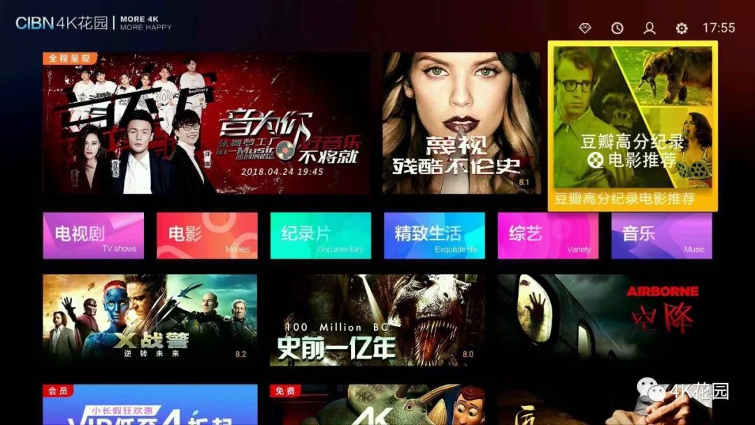 【CIBN 4K花园 】TV APP首页专题:豆瓣高分纪录电影推荐
