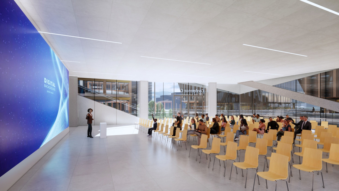 在空间布局上,设计将建筑围绕中央庭院进行布置,形成外部具有科技感的城市界面,与内部有温度的人文内核: