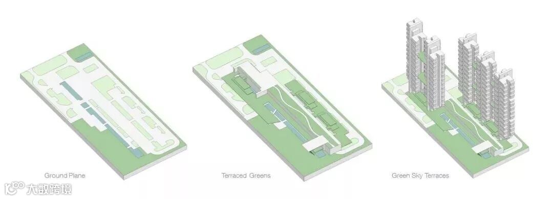 在“杜生庄”政府组屋项目公共住宅案中,WOHA 提出“立体聚落”的概念,三大簇群各自形成了一个立体聚落。