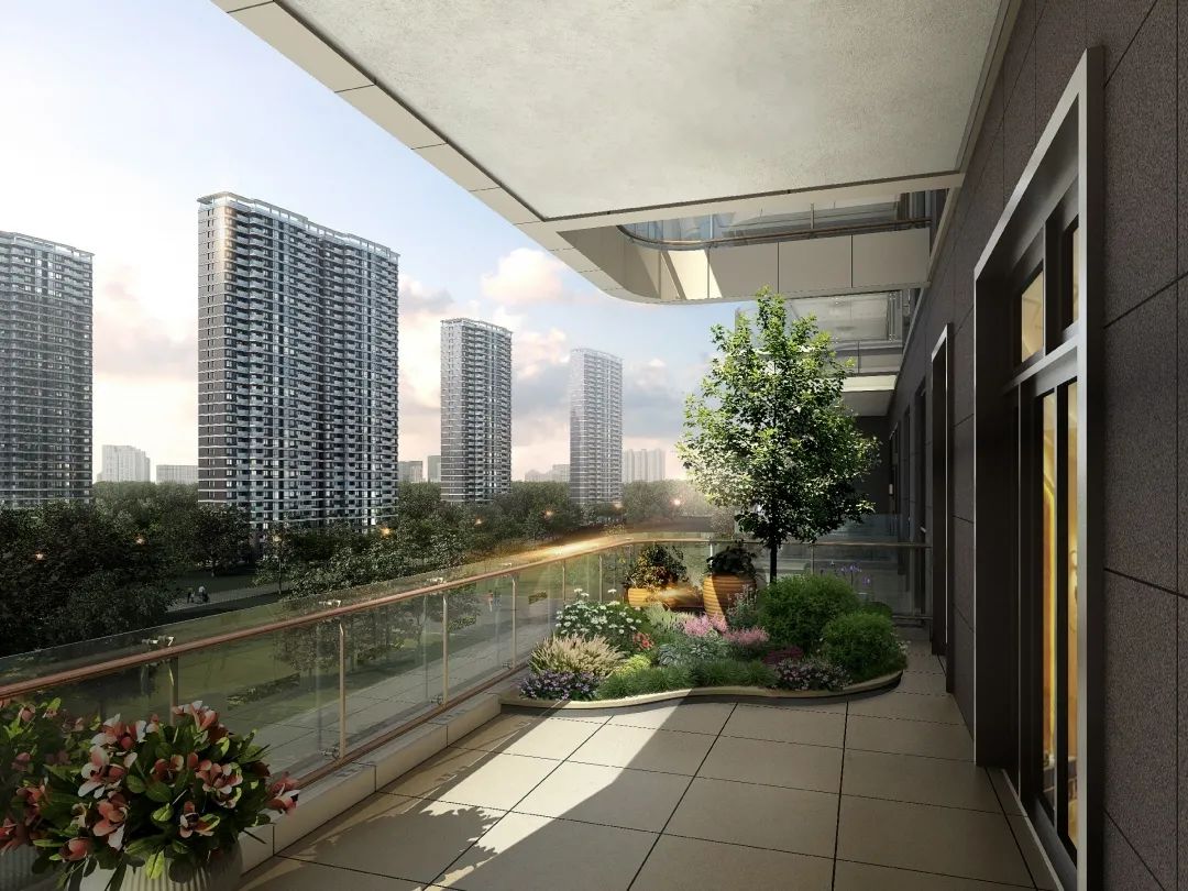 西安招商央畔,宽约7.4米的大横厅,加上通过错层设计让奇数层洋房拥有的转角露台,完全达到了叠拼才有的居住体验。