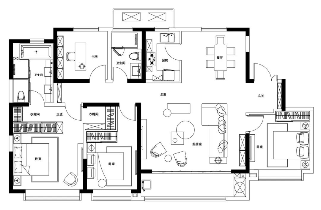 横厅的设计,使得沙发背后又增加了一个X空间,不同家庭根据不同需求依托不同的软装摆放,可营造不同的场景。