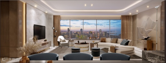 270°流光环幕的全景设计,拥有约10m+的采光面,充分利用社区及周边的景观资源,创造无边界的视觉效果。