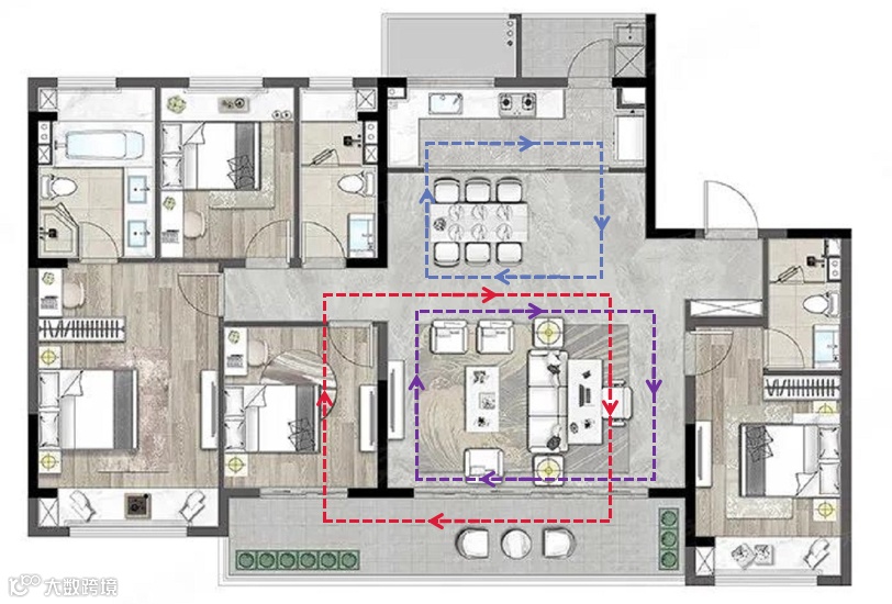 “大房”时代!严格来说,真正的大平层面积至少应该建面160㎡起,建面约160㎡以上大平层户型逐渐受宠。